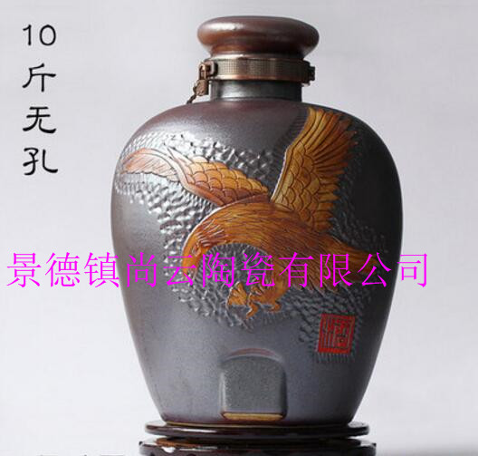 陶瓷酒瓶顾名思义就是用来盛装酒水的陶瓷容器,景德镇陶瓷酒瓶材料采用的是高岭土,经1300多度高温烧制而成,是完全瓷化的陶瓷工艺品。陶瓷酒瓶不但具有实用性同时也具有一定的文化内涵,现在随着广大群众的生活品质的提高,对物质的要求也越来越高,一般用陶瓷酒瓶盛装的都是高档的酒类。