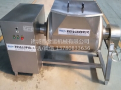 横轴搅拌炒锅的U形锅体顶部抽真空,夹套采用蒸汽加热,无段变速与蜗轮、减速机的组合传动,增大了横轴搅拌的办矩,采用聚四氟乙烯材质刮板的搅拌器,在物料的翻滚搅拌过程中,搅拌器与锅体的全方位充分接触,确保了无搅拌死角。锅体的开盖、卸料、复位采用液压、机械传动控制,操作极为方便。真空炒制可降低炒制温度,特别适应于热敏原料的炒制,避免了因过度受热引起颜色及口味的劣化,保持了原料原有的色、香、味。提高了炒制效率,并降低了能耗,缩短了炒制时间。