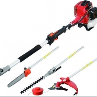 高枝油锯用于森林采伐、造材、打枝等以及木场造材、铁路枕木锯截等作业。尤其适用于高处危险之地的修剪.该产品具有功率大、振动小、锯切效率高、伐木成本低等诸多优点。已成为我国林区手持式采伐主导机械。该产品可任选其中一个工作头,如割草机头、割灌机、高枝油锯、绿篱剪四种用具。此产品携带方便,使用简单,具有此四种功能,可选购多功能高枝产品,四合一,三合一产品。
