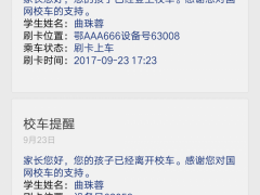 学生上下车刷卡信息及时通过短信平台发生给学生家长,让家长掌握孩子上下车状态。