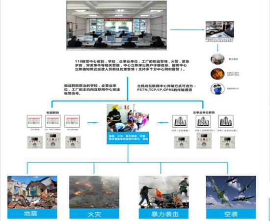该系统主要目的是为了实现对内对内疏散,安全演练演习,使用单位的安全教育,对外防暴防控,自然灾害预警群播,群防。在突发紧急状态下一键报警、一键呼救,在最短的时间内将报警信息以各种通信手段通知给各级维稳力量,110接警中心,第三方运维平台,最大限度的缩短报警时间,提高突发事件的应急处置效率,实现网格内各维稳力量的群防群治、一呼百应,提高突发公共事件下的应急反应能力和自救互救能力。