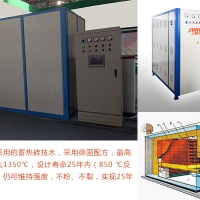 机组储热材料采用国外进口的高密度氧化镁蓄热砖,是一种进口顶级复合材质,工作温度可达1250℃,可靠性强,使用寿命远远超过同类材质材料。换热器采用世界最优高效换热管,由多种特种保温隔热材料制成,可将热能的泄漏控制在2%/日以内。该设备隔热保温性能好,当热面温度达到800℃时,冷面温升≤35℃,热面温度700℃时,冷面升温≤25℃;热能输出控制精确,热效率可以达到95%。蓄热介质采用高比热容的固体材质,蓄热温度可高达800℃,设备体积小,减少了用户的使用成本。