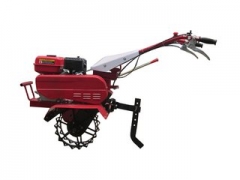 8、作业中,应注意机器四周,以确保安全。尤其是在果树下操作时,由于地方狭窄,地上又长了很多草,所以一旦有什么东西是很难发现的,这就要求微耕机操作人员在作业前,就要仔细的检查周围是否有铁丝、石块等,排除障碍后才能作业。同时要注意的是,选择“倒退”档时,必须小油门起车,确定身后有足够的空间,没有障碍物后,方能作业。