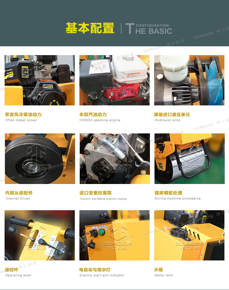 轴承是进口的,能承受住机器强负荷、高转速的长期运作; 配的动力是9马力的正宗本田汽油机,名牌品质保证;