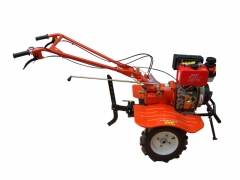 微耕机以重量轻、体积小、结构简单、用途广等特点,已成为广大农民替代牛耕的首选,近年来我县微耕机的保有量不断增加,为了适应单家独户和套种作业的需求微耕机将向更小的方向发展。由于劳动力的大量转移在家务农的大部分是老人和妇女所以以168F汽油机为动力的微耕机将在未来一段时间(大部分土地未流转到少数人手中以前)是我区微耕机的发展趋势。该类机具的特点是重量轻45-55千克、容易启动、维修费低、田间转移方便、适应性广耕幅最小为40厘米广泛适用于玉米地、大栅、水果地、菜地等。