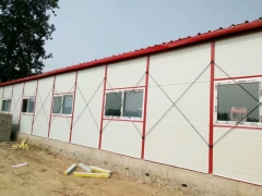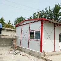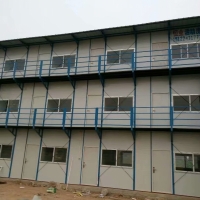 1、活动房两层的上屋,80×80槽钢全部到顶;一层顶柱与柱之间用90×400槽钢桁架,屋顶用“人”字型桁架,用10cm螺栓连接固定,墙板插入后,在外墙用拉杆成“×”式拉结紧固。