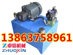 液压站是由液压泵、驱动用电动机、油箱、方向阀、节流阀、溢流阀等构成的液压源装置或包括控制阀在内的液压装置。按驱动装置要求的流向、压力和流量供油,适用于驱动装置与液压站分离的各种机械上,将液压站与驱动装置(油缸或马达)用油管相连,液压系统即可实现各种规定的动作。