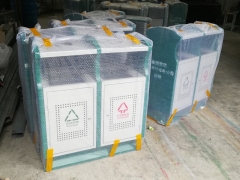 【喷涂工艺】:户外垃圾桶采用新型的剪钣下料,折弯、冲压、焊接、打磨、等工艺:表面经过除油、喷砂防锈处理后,再进行酸洗磷化处理,;表面清理干燥后整体进行静电喷涂,涂层厚度达到2mm,经过流水线高温固化炉固化后再出炉冷却,加工后的塑粉附着力强,不易剥落;