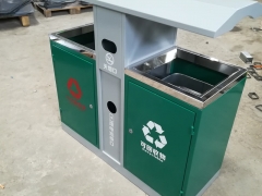 【表面处理】垃圾桶本身经喷砂处理去油去锈后,钢板表面抗紫外线丙稀酸油漆多层喷涂。