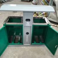 【表面处理】垃圾桶本身经喷砂处理去油去锈后,钢板表面抗紫外线丙稀酸油漆多层喷涂。