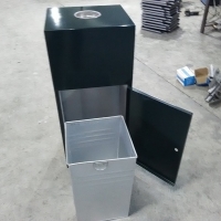 【材 质】:垃圾桶可选用优质的工业冷轧板、镀锌板、复合材料、不锈钢等材料,(可根据客户要求或图纸制作)。垃圾桶经过专业裁板、折边、数码设计冲孔后无缝焊接成型,再经过打磨、抛光工艺经喷砂处理去油去锈后再采用立邦户外漆喷涂后放置在190度烤漆房烘干后取出完成防腐防锈过程。