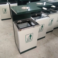 【材 质】:垃圾桶可选用优质的工业冷轧板、镀锌板、复合材料、不锈钢等材料,(可根据客户要求或图纸制作)。垃圾桶经过专业裁板、折边、数码设计冲孔后无缝焊接成型,再经过打磨、抛光工艺经喷砂处理去油去锈后再采用立邦户外漆喷涂后放置在190度烤漆房烘干后取出完成防腐防锈过程。