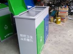 【表面处理】垃圾桶本身经喷砂处理去油去锈后,钢板表面抗紫外线丙稀酸油漆多层喷涂。