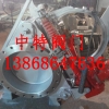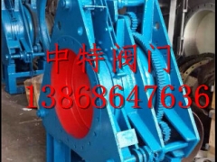 产品说明:该阀门由左阀体、中阀体、右阀体、扇形盲板、丝杆螺母付、不锈钢补偿器、两个蜗轮传动机构等组成。它是通过三根丝杆连成一体,并把三个阀体分别固定在底座上,构成【我厂专业生产涡轮式眼镜阀,通风蝶阀,套筒阀,启闭机等污水处理阀,冶金非标阀,通风阀门系列】一个刚性结构体。中阀体与右阀体用不锈钢膨胀管联接,左、中阀体分别用三根两端带左右梯形螺纹的丝杆联接,将三根丝杆同时作正向(或反向)旋转,则左、中两阀体得到压紧(或分离)。三根丝杠中上面一根丝杆中间装有盲板,盲板绕该轴心旋转。下面两根丝杠在同样的部位上安装有盲板的定位块,盲板旋转时可以防止盲板漂移,避免密封胶圈擦伤。其中一根上装有蜗轮传动机构,实现松开夹紧阀体的目的