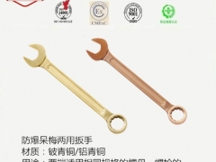 防爆呆梅两用扳手:一端与单头呆扳手相同,另一端与梅花扳手相同,两端拧转相同标准的螺栓或螺母.防爆呆梅两用扳手,选用铍青铜、铝青铜合金材料。适用范围:可广泛应用于石油、石化、油站、油库、采气、化工、军工、电力、矿山、电子、铁路、等潜在火患和爆炸的危险环境中,也是机械制造和机械修理必不可少的专用东西. 防爆两用扳手经过加工处理后的铍青铜产品的抗拉强度能够抵达35度以上,并且这种材料的产品能防磁,所以这种产品又是既防爆又防磁的产品,分外合适于在恳求更高的工作场合运用.铝青铜的防爆两用扳手的抗拉强度能抵达25度以上.防爆两用扳手是常用的扳手,在机加工车间加工完毕后,会进行一系列的查验。外观质量查验如:扳手表面不该有裂缝、毛刺及明显的缝隙、切痕、氧化皮等缺陷,柄部应平直。尺度查验等。防爆扳手是防爆东西里的一类产品,也是防爆东西里面运用最广泛、最一再的手动东西。 防爆扳手具体包括防爆活扳手、防爆双头梅花扳手、防爆双头呆扳手、防爆呆梅两用扳手、防爆敲击梅花扳手、防爆敲击呆扳手、防爆高颈敲击梅花扳手、防爆凸型敲击梅花扳手、防爆弯柄敲击梅花扳手、防爆阀门扳手、防爆内六角扳手、防爆F型扳手、防爆勾扳手、防爆开桶扳手、防爆棘轮扳手等等。