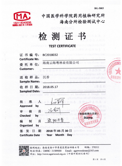 本品取材优质海南沉香,香材通过CMA农药及重金属测试,达到食品及药材标准,安全可靠。