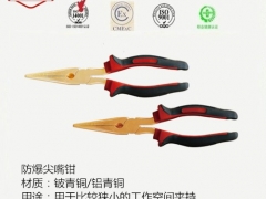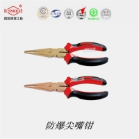 河北四凯防爆工具制造有限公司专业制造防爆工具,防磁工具。河北四凯防爆尖嘴钳柄上套有额定电压500V的绝缘套管。是一种常用的钳形工具。用途 主要用来剪切线径较细的单股与多股线,以及给单股 导线接头弯圈、剥塑料绝缘层等,能在较狭小的工作空间操作,不带刃口者只能夹捏工作,带刃口者能翦切细小零件,它是电工(尤其是内线器材等装配及修理工作常用工具常用的工具之一)