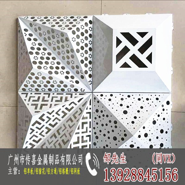 冲孔铝单板时尚与个性并存,富有艺术特色。配以不同颜色和形状各异的冲孔,则会则会营造出独特的氛围,更会提升建筑的层次感和现代感。冲孔板一般采用优质1100、3003、5005单层铝合金板为基材。表面涂层分为氟碳喷涂,粉末喷涂,聚酯漆喷涂。铝板表面涂层性质严格按客户要求,颜色可由公司负责提供标准色卡供客户选择。冲孔铝单板产品厚度主流的有1.5mm、2.0mm、2.5mm、3.0mm、4.0mm等各种规格,成型铝单板最大尺寸可达1500x4000mm。单层铝合金幕墙板的结构主要由面板、加强筋、挂耳等部件组成。加工好的氟碳涂层板材01构造 由上至下依次为:保护膜层、氟碳树脂PVDF系统(三涂时由上至下分别为光漆、面漆、底漆)、预处理层、铝板层、预处理层、背覆涂层(双面喷涂)。根据客户要求,铝板背面可配合添加矿棉、岩棉以达到增强保温、隔热和隔音等效果。