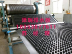 排水板的高度也就是凸点的高度决定了排水量的大小,凸点越高,排水量越大,在同等质量来说,高度越低了抗压越好,价格也低,卷材排水板具有防水,防潮,防渗,防裂,隔根,阻根的租用,可以有效的阻止根系的穿刺和破坏防水层。排水板在种植屋面中应用的优点就是多余水面的及时排出,减少水分排出后给屋面增加的载荷,防止根系的腐烂,保证种植土必要的水分。这样可以保护建筑结构,对种植物的根穿刺有一定的作用,产品的研发和生产是根据国家的标准去生产,各地区的市政工程中也应用了排水板。泽瑞生产车库排水板/种植绿化蓄排水板供应到廊坊183*5387*7611