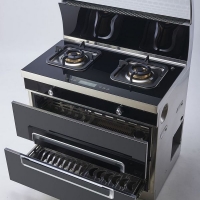 消毒柜:铝+塑大回形拉手,双层立体钢板拉篮,紫外线臭氧消毒,红外线加热烘干。