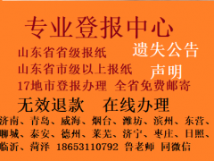 齐鲁晚报、山东商报、大众日报 、济南日报、经济导报、山东法制报 、新晨报登报挂失 低价格 诚信服务 微信办理 见报付款