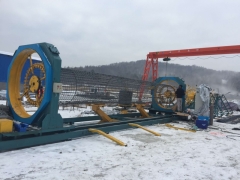 天水数控钢筋笼滚焊机后通过固定旋转盘及移动旋转盘转动把绕筋缠绕在主筋上(移动盘是一边旋转一边后移),同时进行焊接,从而形成钢筋笼。该设备采用可编程控制器进行控制,天水数控钢筋笼滚焊机