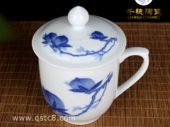 景德镇会议室接待茶杯是在高温1300摄氏度以上一次烧成,花纹青翠欲滴,显得幽倩美观。有着着色力强,发色鲜艳,纹饰不退色,良好的稳定性等特点。并且我们的茶杯具有良好的安全性,对人体无副作用,健康环保耐高温。