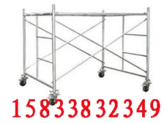 移动脚手架主要有主框,横框,交叉斜撑,脚手板,可调底座等组成。交叉拉杆又称斜拉杆、移动脚手架是纵向连接两副门架的交叉型拉杆。杆件两端压扁部分冲有销孔,组装时与门架立杆上的锁销锁牢。表面处理:电镀(冷镀锌)、浸锌(热镀锌)脚轮:又称为地轮,可安装在移动脚手架下部,组成移动式脚手架.可作为机电安装.油漆粉刷.设备维修.广告制作的活动工作平台.脚轮为6寸带刹车,具有使用方便.移动灵活.安全可靠等特点.