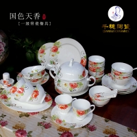 景德镇餐具中式可作为商务馈赠,节日庆典,乔迁礼品等,景德镇餐具中式采用骨瓷制作,器型美观典雅,彩面润泽如玉,花面多姿多彩,景德镇餐具中式更加突显出中国韵味。