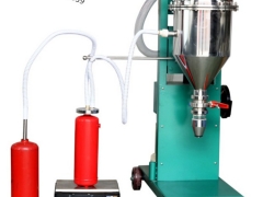 灭火器多采用灌装机灌装超细干粉,当前的灌装机灌装过程中要不断清理附着在管路及过滤器上的干粉,干粉压实度不好,不易达到合适的密度,灌装麻烦。