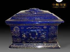 有着不同的制作工艺,其中手工绘制和描金装饰是棺型陶瓷骨灰盒的专属工艺。