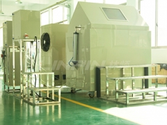 产品用途:盐雾腐蚀试验箱通过考核对材料及其防护层的盐雾腐蚀的能力,以及相似防护层的工艺质量比较,同时可考核某些产品抗盐雾腐蚀的能力;该产品造用于零部件、电子元件、金属材料的防护层以及工业产品的盐雾腐蚀试验。
