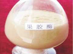 (3)果胶甲酯水解酶(pectin methylesterase;PE),使果胶中甲酯水解,生成果胶酸。为使果胶完全分解,需要先用PE,再用PG。在果汁澄清中,亦同时用这两种酶。灰白色粉末或中黄色液体。作用pH值3.5~4.5,作用温度40~50℃。果胶酶存在于植物和微生物中,动物细胞通常不能合成这类酶。工业上采用曲霉菌,如黑曲霉或青霉菌等生产。用于果汁加工(澄清果汁)、橘子脱囊衣以及制造浓缩果汁、果粉和低糖果冻。也可用于加强果酒的澄清效果,提高酒的收率。还可用于麻料脱胶和木材防腐等。果胶酶本质上是聚半乳糖醛酸水解酶,果胶酶水解果胶主要生成β-半乳糖醛酸,可用次碘酸钠法进行半乳醛酸的定量,从而测定果胶酶活力。