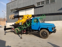 汽车吊立杆钻孔机汽车立杆打孔两用机汽车打孔立杆两用车为我厂独立研发生产的新型工程设备,该设备采用六轮驱动的汽车作为动力,最大起吊能力8T,康明斯发动机,160马力,吊臂6节6米,吊臂半径三十多米。汽车吊立杆钻孔机汽车立杆打孔两用机汽车打孔立杆两用车具有挖坑钻孔,立电线杆功能为一体,挖坑直径可到达600mm,标准钻孔深度:3米。汽车吊立杆钻孔机汽车立杆打孔两用机汽车打孔立杆两用车特点:全部采用液压控制,操作方便,单人即可完成操作,钻孔速度快,在普通黄粘土层最快钻孔速度为47秒/孔,钻孔直径为500mm,深度为1米.再硬土层例如:路基,地基,保证没有大块石头的情况下钻孔速度为2分钟/孔,冻土层可配冻土钻头钻孔速度为5分钟/孔。汽车吊立杆钻孔机汽车立杆打孔两用机汽车打孔立杆两用车钻头安装在第二节吊臂上,实现了跨沟跨距钻坑。本机可旋转360度,在主体不动的情况下可旋转钻坑吊杆,大大提高了工作效率。汽车吊立杆钻孔机汽车立杆打孔两用机汽车打孔立杆两用车为前置式钻孔,比其他厂家后置式钻孔机,操作简单。本机特有的越野性能,对复杂地区,方便灵活可靠,对于通信、电力等工程施工提供了起重机械的需求。汽车吊立杆钻孔机汽车立杆打孔两用机汽车打孔立杆两用车钻孔无需清土,一个人即可完成工作,钻到深度后,可靠吊臂提起,土都附着在螺旋叶片上,很少有回落。提起后只需将钻杆正反转动记下土就会自然落下。汽车吊立杆钻孔机汽车立杆打孔两用机汽车打孔立杆两用车可以实现单人操作,车到孔成,随钻随走。大大提高工作效率。起吊高度分为:8米电线杆,10米电线杆,12米电线杆,15米电线杆,18米电线杆,起吊重量为8T。汽车吊立杆钻孔机汽车立杆打孔两用机汽车打孔立杆两用车特别适合于电力施工单位及其他在狭窄区域能作业的施工单位。