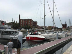 趸船为矩形平底船形状,自身无动力装置。浮在水中通过引桥或台阶平台等连接方式接岸,用作水上浮动平台或供船艇靠泊的浮动码头。趸船码头有混凝土和钢结构两种结构类型,大小尺寸和样式可以根据需要量身定做。它能够适应各种不同的复杂水域,灵活安装、移动方便,多采用锚固和定位桩的方式进行固定,可以配备完善的水电、消防、系泊等配套设施。既可临时停泊又可永久使用,多用在江河湖海等水域,靠泊数量少并且较大的船艇。