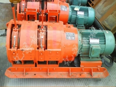 2JP15耙矿绞车有减速装置、主卷筒、副卷筒、操纵装置、钢绳导向装置和电动机组成。这些部件分别装在壳体内外,壳体是yi个具有较好钢性的部件,既起保护、支撑作用,又承受全部载荷。它用螺栓固定在与基础相连的二根滑道上。双筒绞车有yi个主卷筒(装在右侧,即靠近电动机的yi侧),yi个副卷筒(装在左侧)。 三筒绞车有yi个主卷筒(装在中间),二个副卷筒(装在左边和右边),三筒绞车也可以装二个主卷筒(装在右侧和中间),yi个副卷筒(装在左侧),每yi个卷筒都相应有yi个操纵装置和yi个钢绳导向装置。