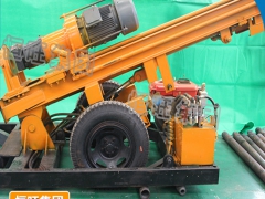 HQZ系列水井钻机是一种轻型、高效、多功能的钻凿孔设备,它主要适用于钻凿水井、农业灌溉井、地热空调孔及其他用途的井孔,尤其适用于山区和岩石地层的取水工程。该钻机可在不同地层上进行穿凿工作,钻孔直径可达219mm。该钻机采用新型液压技术,配套大扭矩液压马达回转以及大缸径液压油缸推进,名厂多缸发动机为液压系统提供动力,两级空滤以及空压机进气设计,延长柴油机的使用寿命。独特的泵组设计方便维修,降低维修成本。集中控制的液压实际操作台,方便操作。该系列钻机采用挖掘机履带底盘,越野性能强。独立的模块设计,可使钻机装在卡车上,增加其机动性。两档回转和推进速度可满足在土层和岩层的不同穿凿需要。组合式的dingweiqi,可根据不同型号的钻杆和冲击器进行调整更换定位盘,保证定位定心准确、可靠。卷扬机构方便钻杆和冲击器的吊装,降低劳动强度
