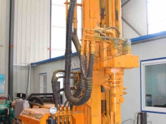 HQZ系列水井钻机是一种轻型、高效、多功能的钻凿孔设备,它主要适用于钻凿水井、农业灌溉井、地热空调孔及其他用途的井孔,尤其适用于山区和岩石地层的取水工程。该钻机可在不同地层上进行穿凿工作,钻孔直径可达219mm。该钻机采用新型液压技术,配套大扭矩液压马达回转以及大缸径液压油缸推进,名厂多缸发动机为液压系统提供动力,两级空滤以及空压机进气设计,延长柴油机的使用寿命。独特的泵组设计方便维修,降低维修成本。集中控制的液压实际操作台,方便操作。该系列钻机采用挖掘机履带底盘,越野性能强。独立的模块设计,可使钻机装在卡车上,增加其机动性。两档回转和推进速度可满足在土层和岩层的不同穿凿需要。组合式的dingweiqi,可根据不同型号的钻杆和冲击器进行调整更换定位盘,保证定位定心准确、可靠。卷扬机构方便钻杆和冲击器的吊装,降低劳动强度