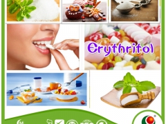 赤藓糖醇(Erythritol,又名1,2,3,4-丁四醇;内消旋-间赤藻糖醇),白色结晶,微甜,相对甜度0.65。有清凉感。发热量低,约为蔗糖发热量的十分之一。溶于水,易结晶,适于需蔗糖口感的食品,如巧克力和餐桌糖等。不被酶所降解,只能透过肾(易被小肠吸收)从血液中排至尿中排出,不参与糖代谢和血糖变化,故宜于糖尿病患者食用。在结肠中不致发酵,可避免肠胃不适。