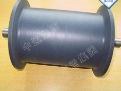 橡胶地滚一种用于矿山斜井井筒提升托起钢丝绳的橡胶地滚,由滚体和滚轴组成,其特征在于所述的滚体为橡胶滚体,滚体两端高于平面,滚体为空心,在其空心两端各装一轴承,滚轴串入滚体空心间安装在轴承上,轴承外配有密封圈。zy17