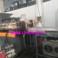 破布头回收造粒机 主要创新点为: a.使用了高长径比的反应挤出机,可使聚酯瓶料的特性粘度显著提高; b.在螺杆挤出机中实现了高真空反应缩聚反应与物料的熔化混合同时进行,极大地节省了能耗; c.低污染,连续化生产,处理量较大,经济效益客观。