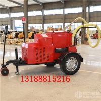 在工作时首先在料箱内加入沥青或灌缝胶,启动发电机供电,依次间断打开导热油泵开关,燃烧器开关,出料管加热开关;调整自动温控系统与材料的温度相同,通过柴油燃烧器自动加热熔料箱内导热油开始升温(拖式为强制循环)使材料融化,温度是通过自控系统来控制。溶料时间大约30-40分钟左右。在材料融化、出料管温度达到后可以进行工作。手持灌缝管对正裂缝灌缝处理。沥青泵的出料流量可调。在工作过程中随时添加材料保证工作的连续性。在灌缝前要对裂缝内的尘土进行清缝处理。