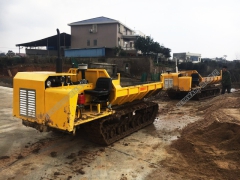 小型履带运输车有8档速度模式,液压倾斜卸货车身,这些都把爬山虎造就成一台万用重负荷运输车。此款自卸履带车可用来在斜坡上、绕过障碍物或者是通过窄路运送各种材料。运输车的手柄处有转向离合器,特制手柄避免造成操作员人身伤害,确保操作员的安全
