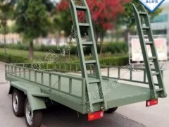 工业用尾板牵引平板拖车重量小,转向灵活,底盘低,装运货物方便快捷,带折叠尾板。
