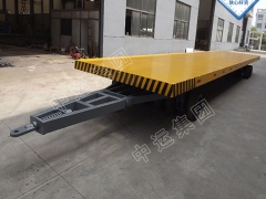 工厂用牵引平板拖车是一种用于工厂、物流、港口的牵引车辆。 载重量,主要外形尺寸可根据客户的需求定制,牵引架使得减小了车辆启动和停止的时候的冲击力,有效的保护了车辆安全,转盘转向。前悬转向,后悬定向,后悬 为双悬挂,高强度缓冲弹簧,在运输过程中,路面不平仍能如履平地。结构简单,适用方便,保养方便,承载能力大,使用寿命长等优点。大量使用在机械、冶金、 仓储运输等多个行业,配合牵引车使得平板在各个领域有着举足轻重的地位。zy17