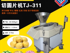 球茎类多功能切菜机、切丝机、切片机、切丁机、切番茄片机TJ-311为直立式送料,主要为切薯片、莲藕片、柠檬圆片等圆片客人需要而设计,另还可切制根茎类蔬菜的片、条、丁,切面光滑美观。