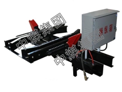 本阻车器是由电动推杆、手把拉杆、轮挡装置、控制箱、防爆按钮和底架等部分组成。当使用电动推杆时,手把拉杆闲置不用。反之使用手把拉杆时电动推杆闲置。