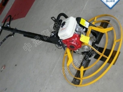 地面抹光机又叫做水泥收光机,它的主要结构是一个汽油机驱动的抹刀转子,在转子中部的十字架底面装有2~4片抹刀。抹刀倾斜方向与转子旋转方向一致,由汽油机带动三角皮带使抹刀转子旋转。 zy17