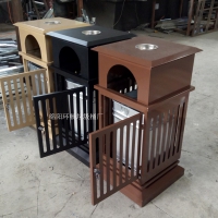 【表面处理】垃圾桶本身经喷砂处理去油去锈后,钢板表面抗紫外线丙稀酸油漆多层喷涂。