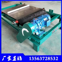 永磁除铁器RCYD-5设备运行时输送带上的物料在经过除铁器下方时,物料中的铁磁性物质被吸引并被吸附至除铁器皮带上,由于电机带动皮带转动,铁磁性物质由于摩擦力和挡板的作用随之带动,当被带动出吸铁区域时,由于自身重力作用和自身惯性速度,被吸出的铁磁性物质就被带出落下至左边输送带上,最后被输送集中,完成自动卸铁过程。